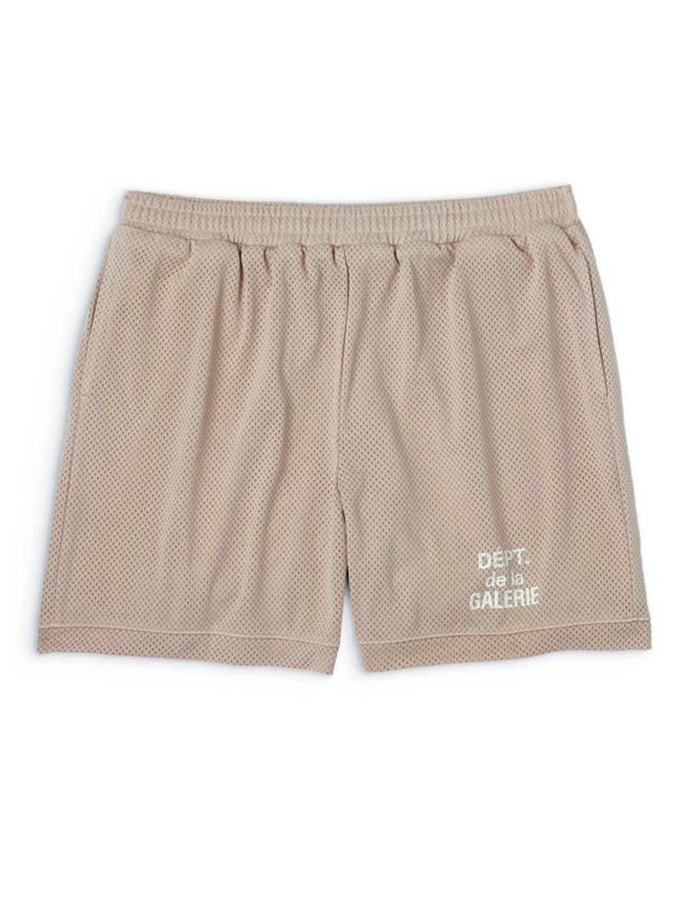 Gallery Dept French Logo Mesh Shorts in Tan combine lightweight breathability with understated luxury. The tan mesh jersey construction offers superior ventilation, while the signature French 'Dept De La Galerie' logo in white lettering at the hem delivers recognisable branding. Practical pocket placement—including a back pocket and dual side pockets—ensures everyday functionality. An elasticated waistband provides a secure, comfortable fit. A refined essential for the discerning streetwear collector.