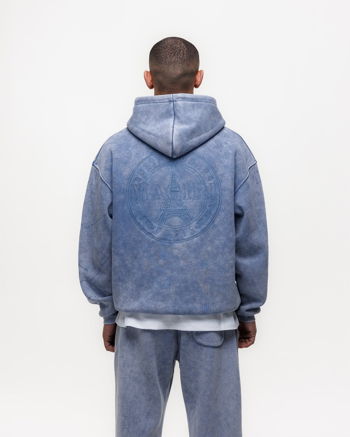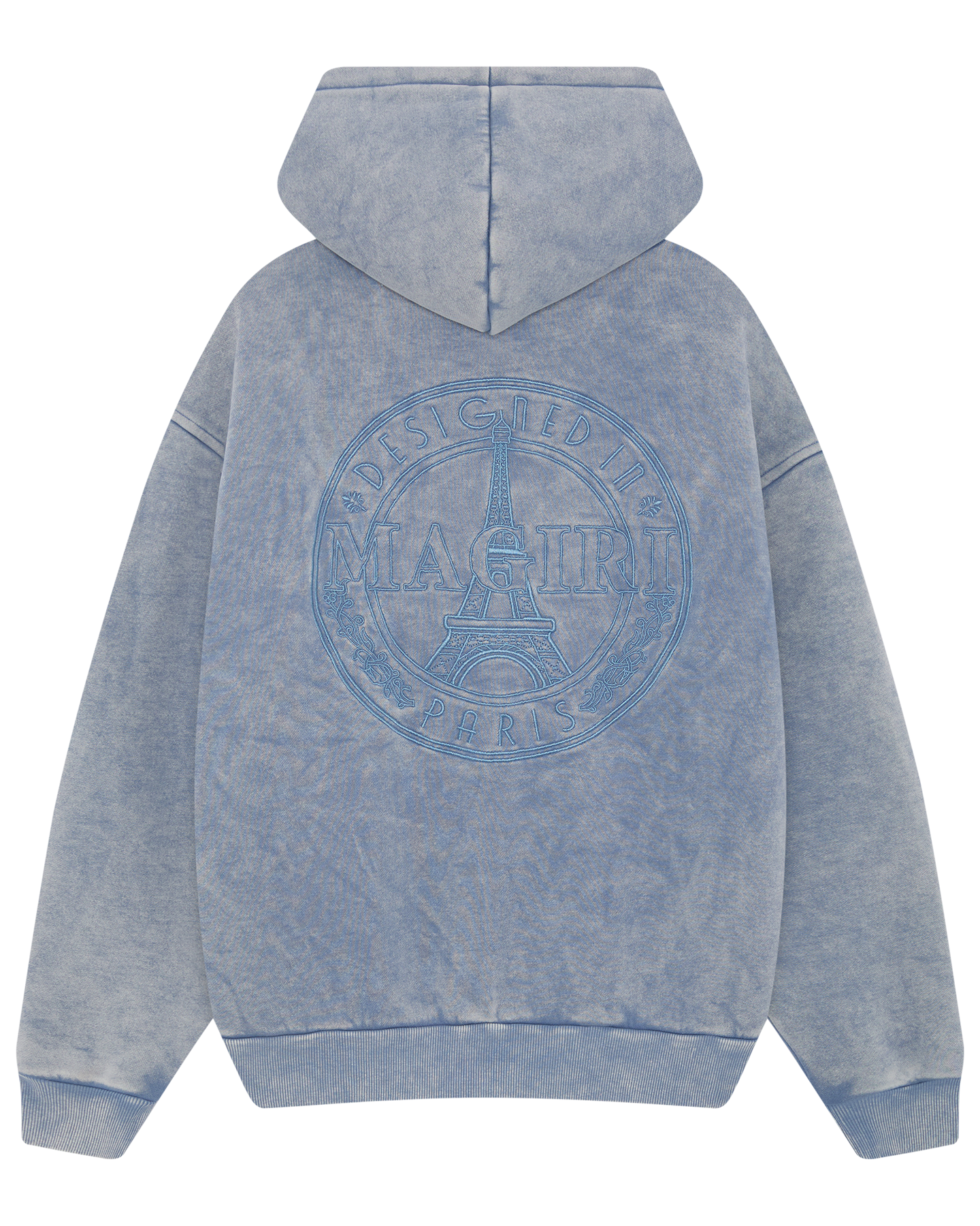 Magiri Embroidered Acid Wash Hoodie in Washed Blue