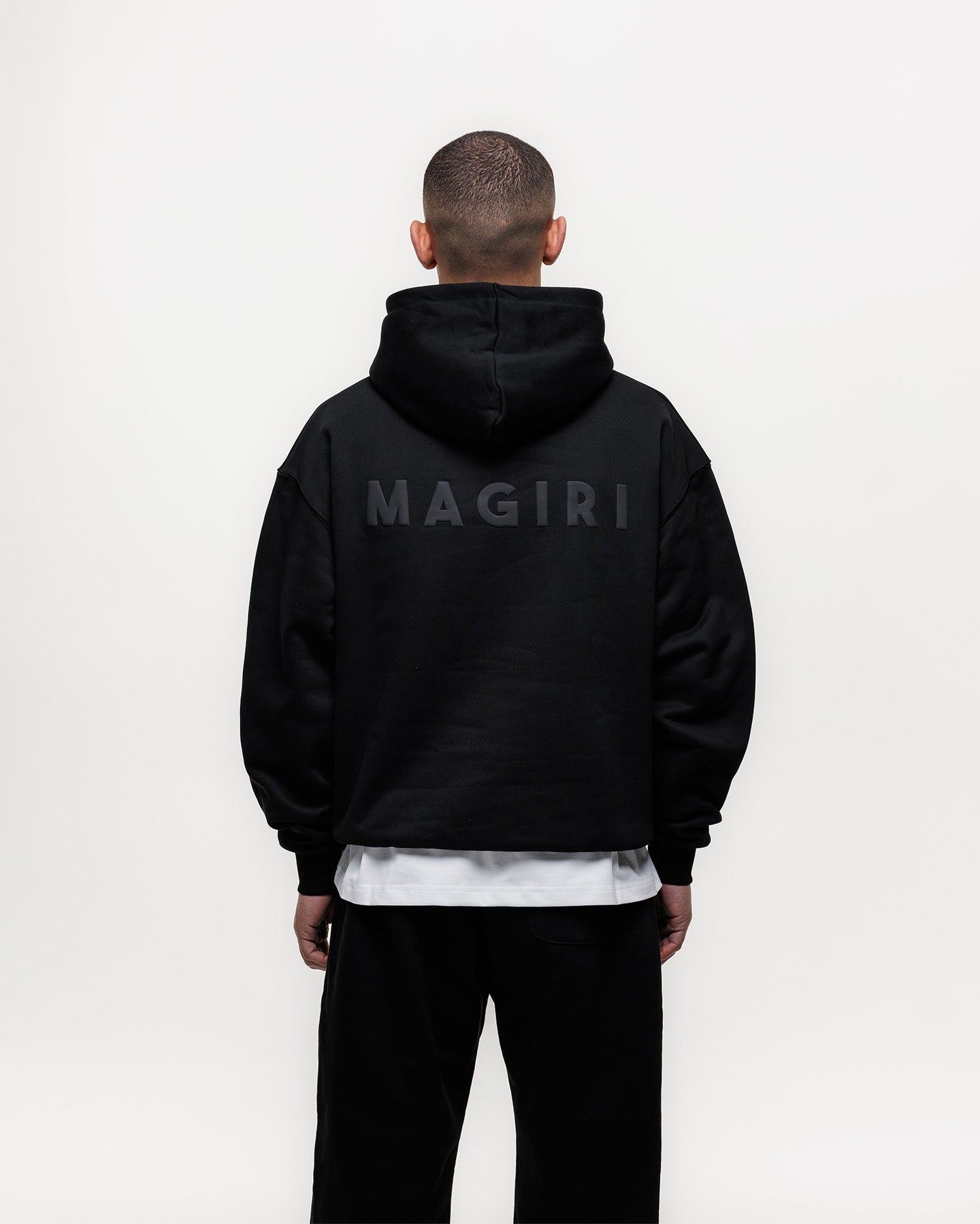Sleek and versatile, these black 100% cotton joggers feature a straight-leg silhouette and raised puff-print logo for a timeless, premium look that defines MAGIRI’s aesthetic.