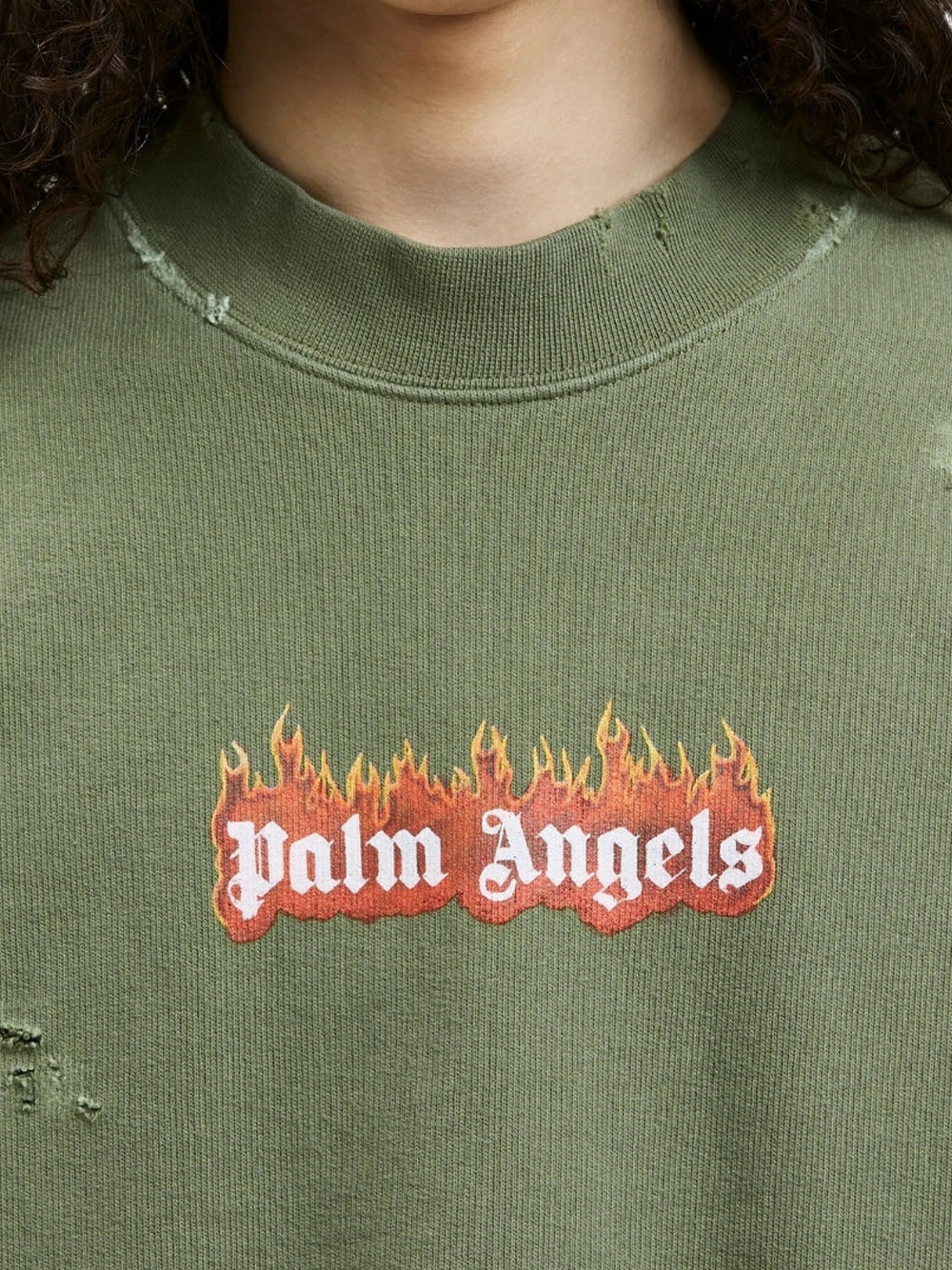 Palm Angels Burning Logo Green Sweatshirt