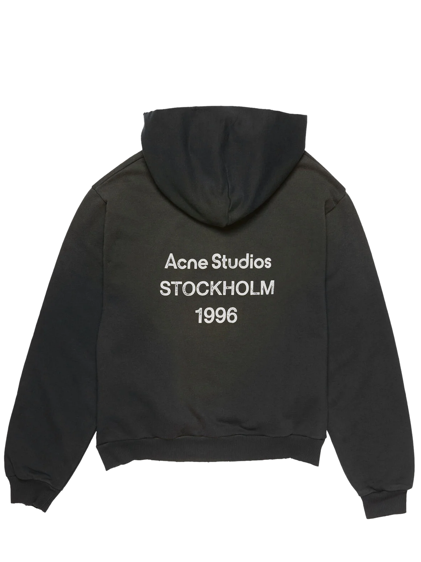 Acne Studios' Stockholm hoodie channels vintage streetwear through a relaxed silhouette and deliberately distressed detailing. The fleece cotton blend features a signature sprayed finish and embroidered 1996 logo at the back, while frayed cuffs and hem add authentic wear-in character. Crafted from organically grown cotton and recycled polyester, this piece balances sustainability with the label's raw aesthetic. The oversized cut suits layering and delivers effortless everyday versatility.