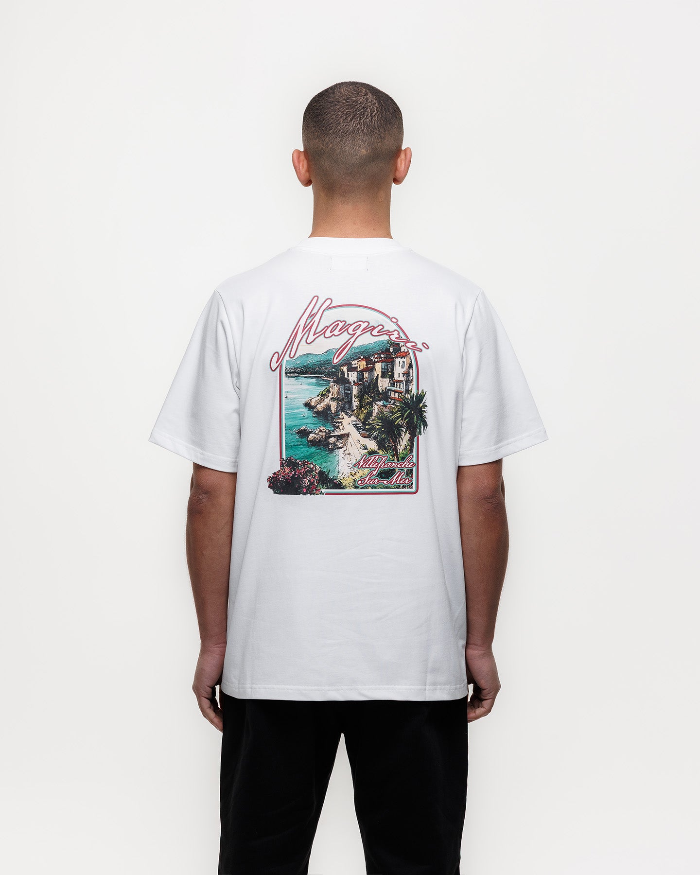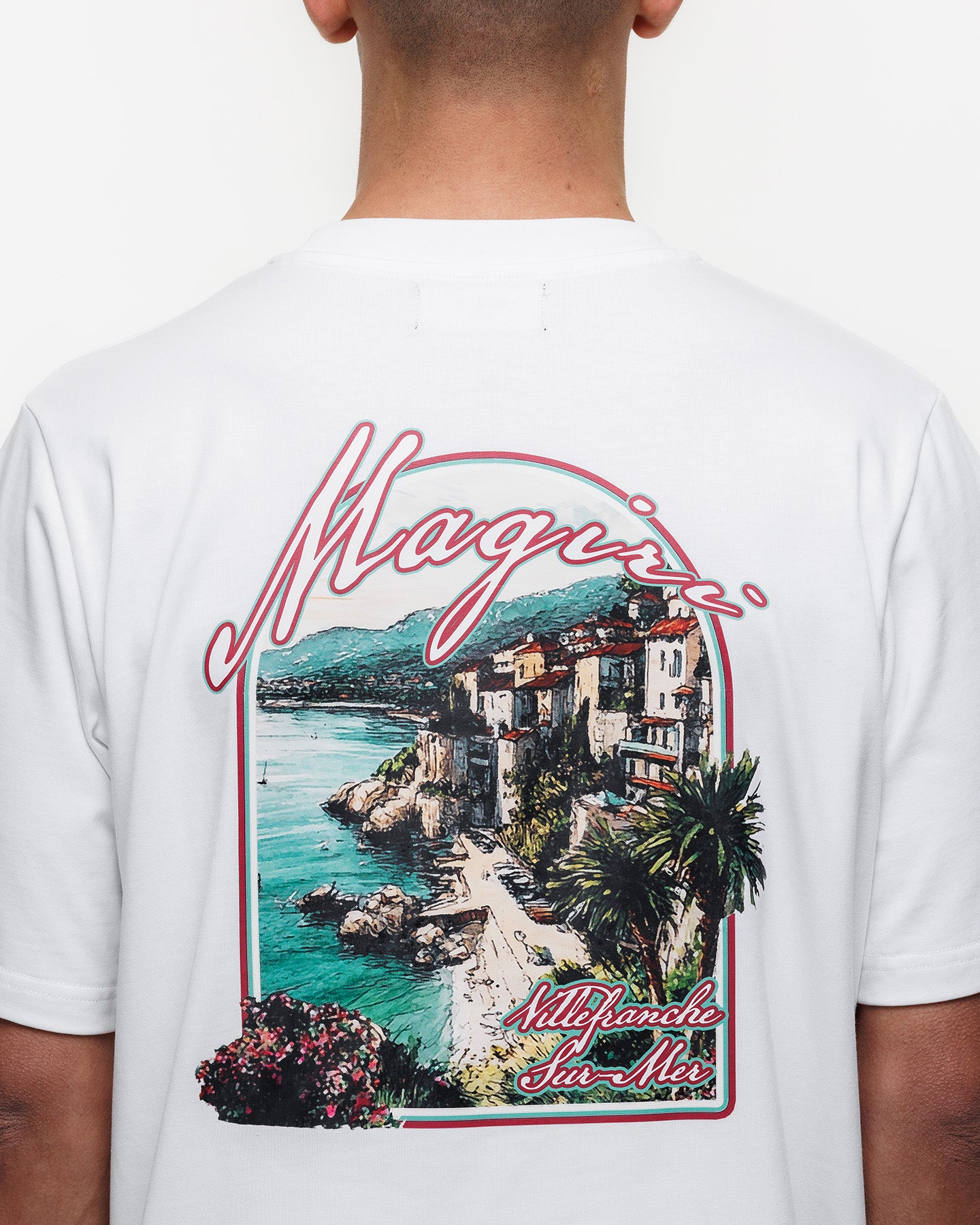 The MAGIRI Sur Mur T-Shirt evokes the calm elegance of the Côte d’Azur through soft tones and refined composition. Expertly crafted from 100% cotton, it balances contemporary style with nostalgic artistry. A distinguished wardrobe essential inspired by life on the Mediterranean coast.