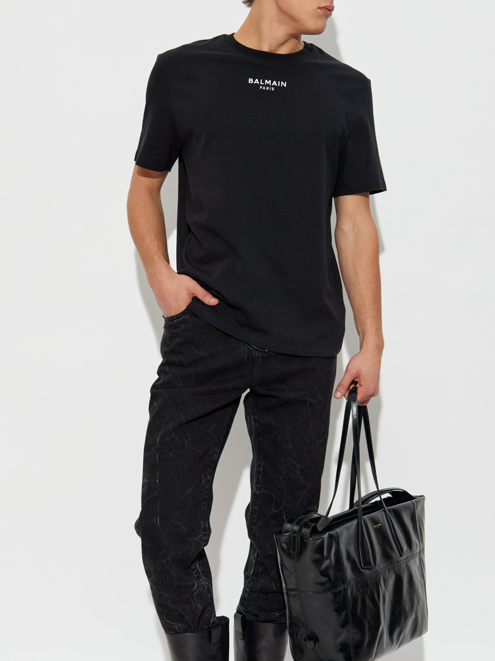 Balmain Paris Small Embroidered Logo T-Shirt in Black