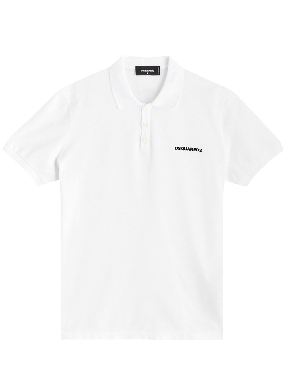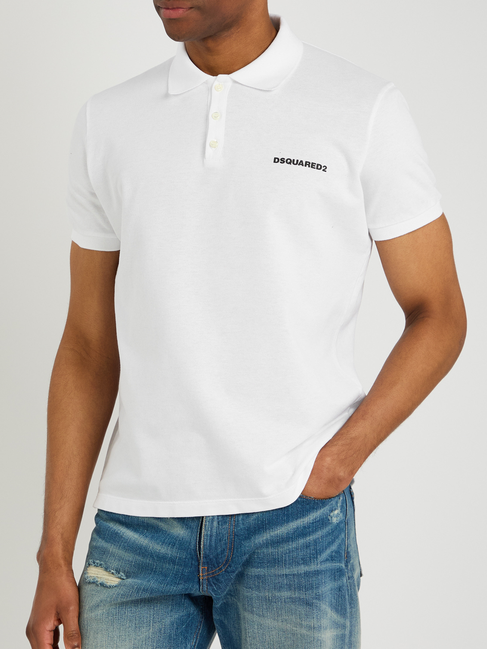 Dsquared2 Logo Print Piqué Polo Shirt in White