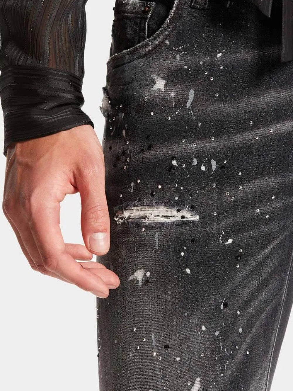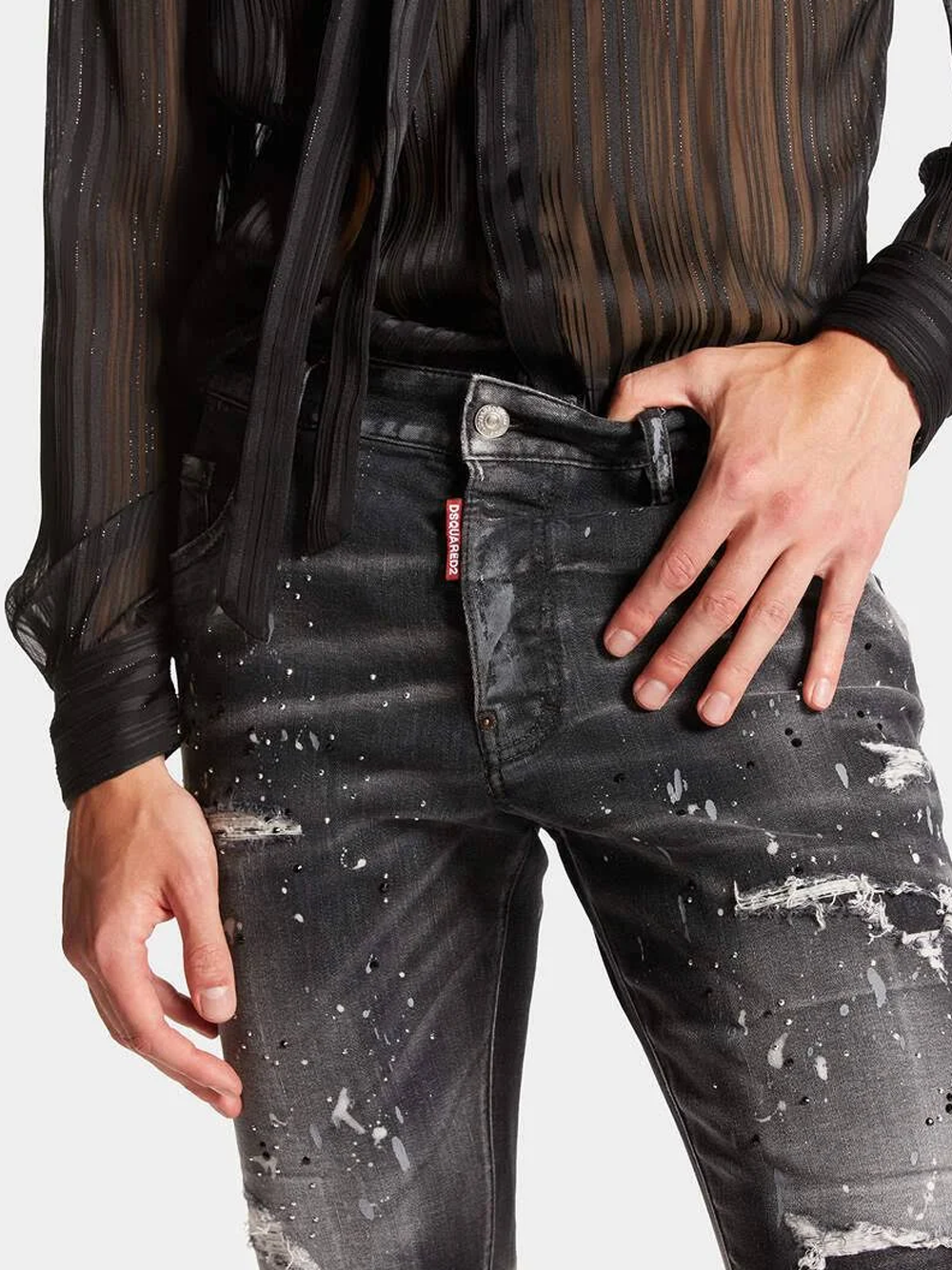 Vaqueros skater Dsquared2 con estampado de salpicaduras de pintura y lavado negro.